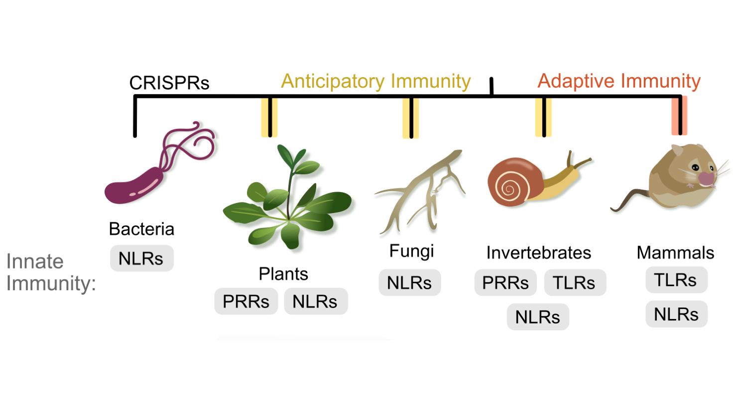 Evolution of NLR immune receptors: All organisms have an innate immune system, including bacteria, fungi, plants, and animals. Moreover, similar protein receptors function in innate immunity across kingdoms. Our lab leads expertise in comparative immunology and innate immune receptor evolution. We also investigate how understanding diversity of innate immune systems can drive new biotechnological approaches.